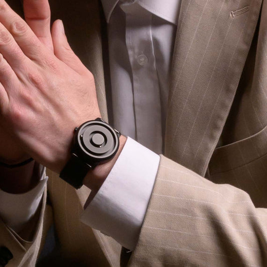 Die Gravity Watch zeigt dir anstelle von analogen Uhrzeigern die Uhrzeit mit rotierenden Kugeln an. Die Kugeln sind beweglich und werden mit Magneten und einem schweizer Uhrwerk angetrieben. Wenn du die Uhr am Handgelenk trägst und sie bewegst, rollen die Kugeln auf geschmeidiger Weise in den Rotationsbahnen.